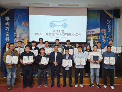 교육후기 총 52건 배터리 수리학교 1기 성황리 종료(with.한국EV기술인협회) 06-18 | 조회수130 열정가지고 와주신 32회 배터리성능평가사 교육 잘 끝났습니다. 06-18 | 조회수137 배터리성능평가사 31회 교육도 잘 마쳤습니다. 06-18 | 조회수128 AI 딥러닝 교육 이차전지 최초적용하여 앞서나가는 한국EV기술인협회+전남여수산학융합원+한국건설생활환경시험연구… 06-18 | 조회수119 어은중학교 노벨과학동아리 배터리실습프로그램을 다녀왔습니다. 06-18 | 조회수128 배터리 수리실습으로 진행된 충북 반도체 고등학교 배터리 교육 프로그램 06-18 | 조회수111 1 2 3 4 5 6 7 8 9