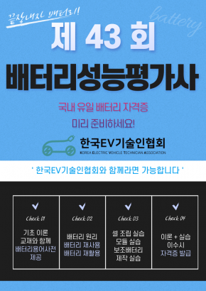 모집공고 총 32건 제5회 배터리 수리 아카데미 교육 안내 입니다. 11-17 | 조회수15 제60회 배터리성능평가사 모집 공고 입니다. 09-10 | 조회수440 제54회 배터리성능평가사 교육 서울에서 합니다^^ 03-18 | 조회수197 제4회 배터리 수리 아카데미 교육 02-01 | 조회수488 46회 배터리성능평가사 모집공고 09-12 | 조회수1510 제43회 배터리성능평가사 모집 공고 07-23 | 조회수787 제1회 배터리 화재 안전 교육 안내 06-28 | 조회수297 41회 배터리성능평가사 모집공고 06-18 | 조회수589 1 2 3 4
